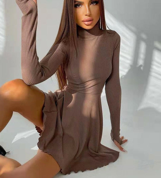 Mia Sparkly Mesh Feather Cuff Mini Dress