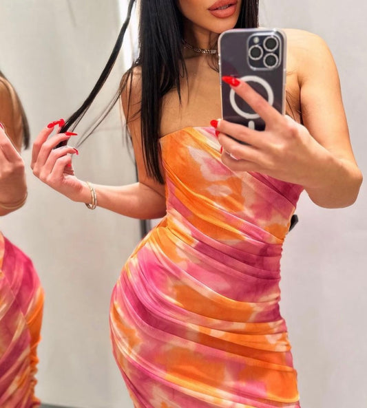 Pink Strapless Bandage Midi Dress