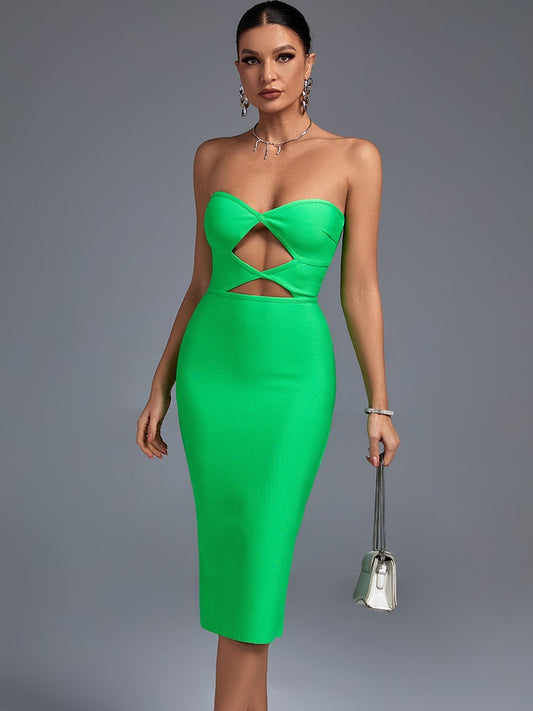 Flavia Green Strapless Evening Midi Dress
