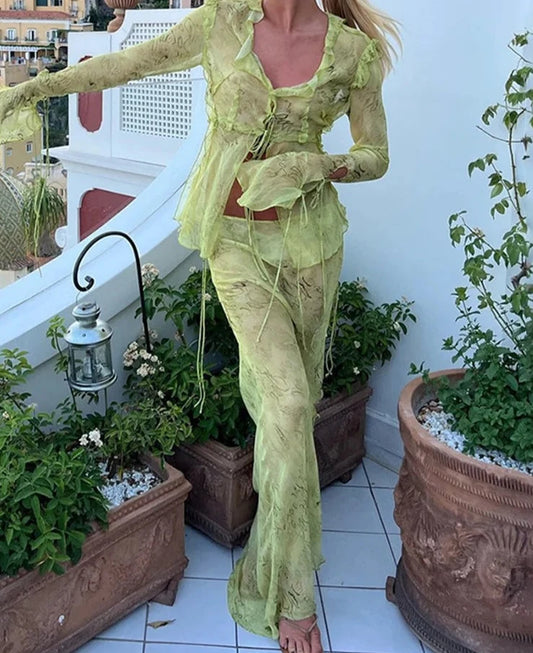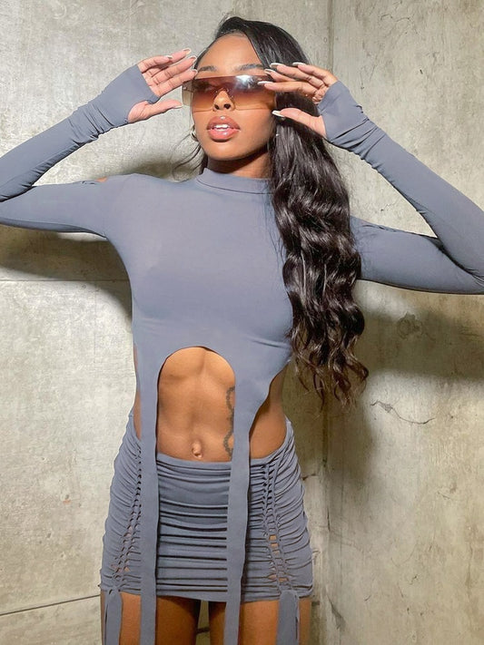 Khaki Knot Detail Skirt and Long Sleeve Top